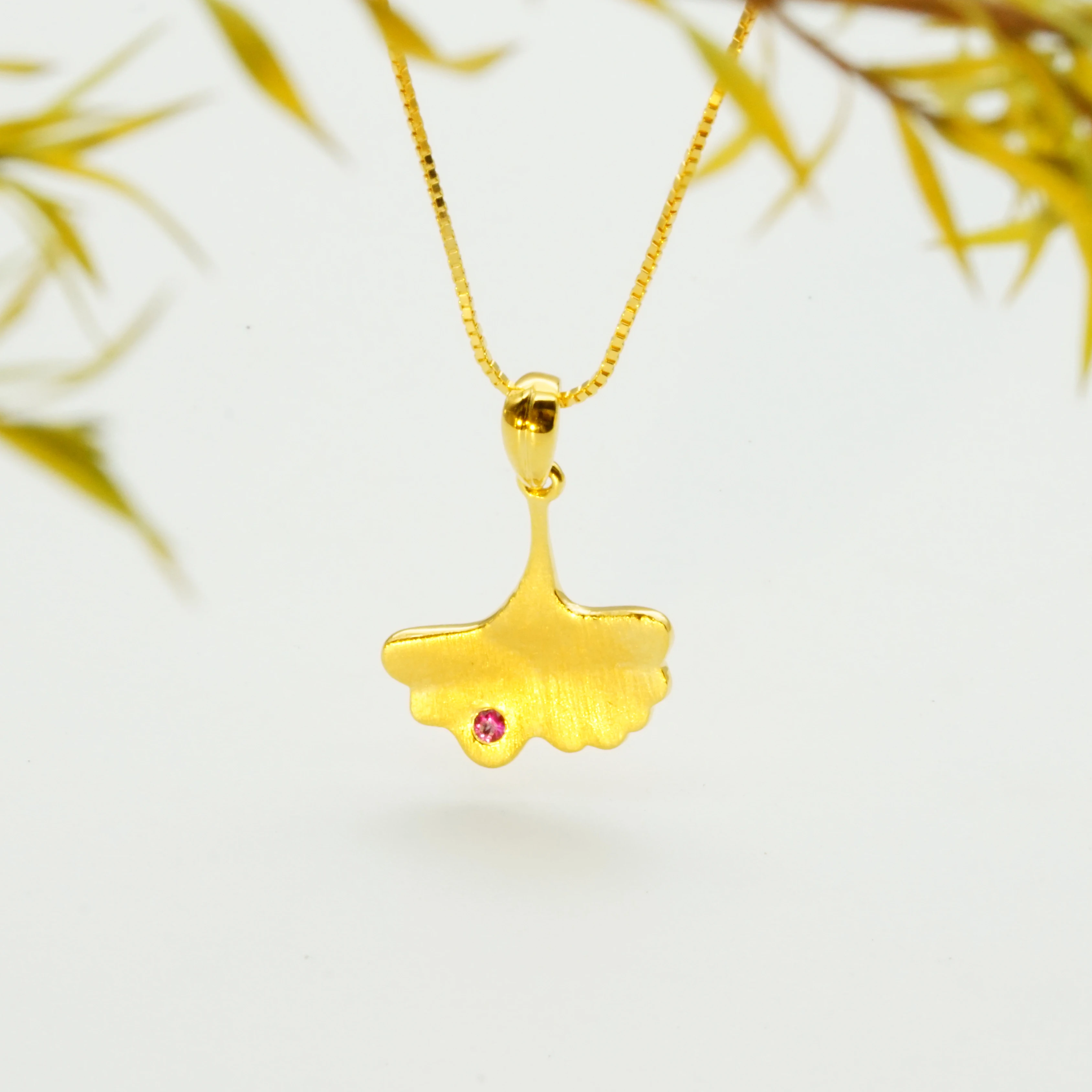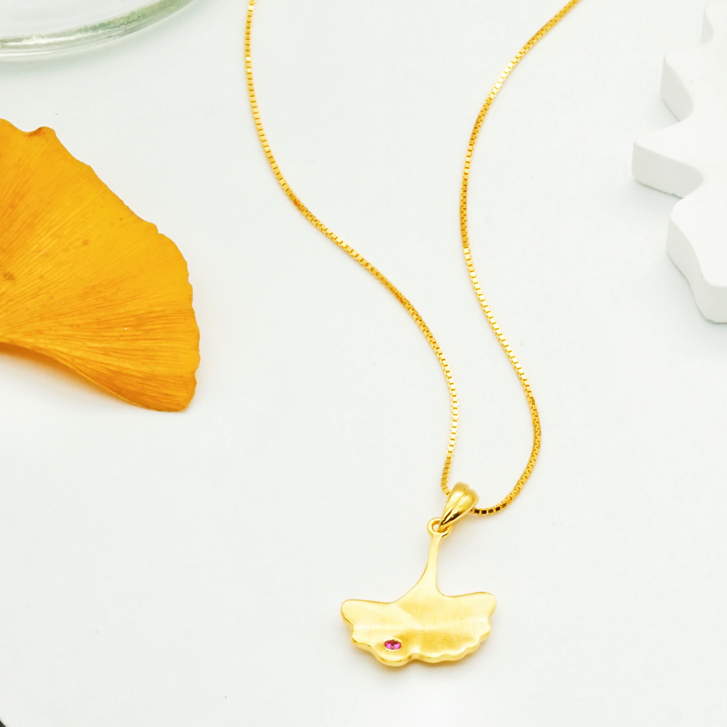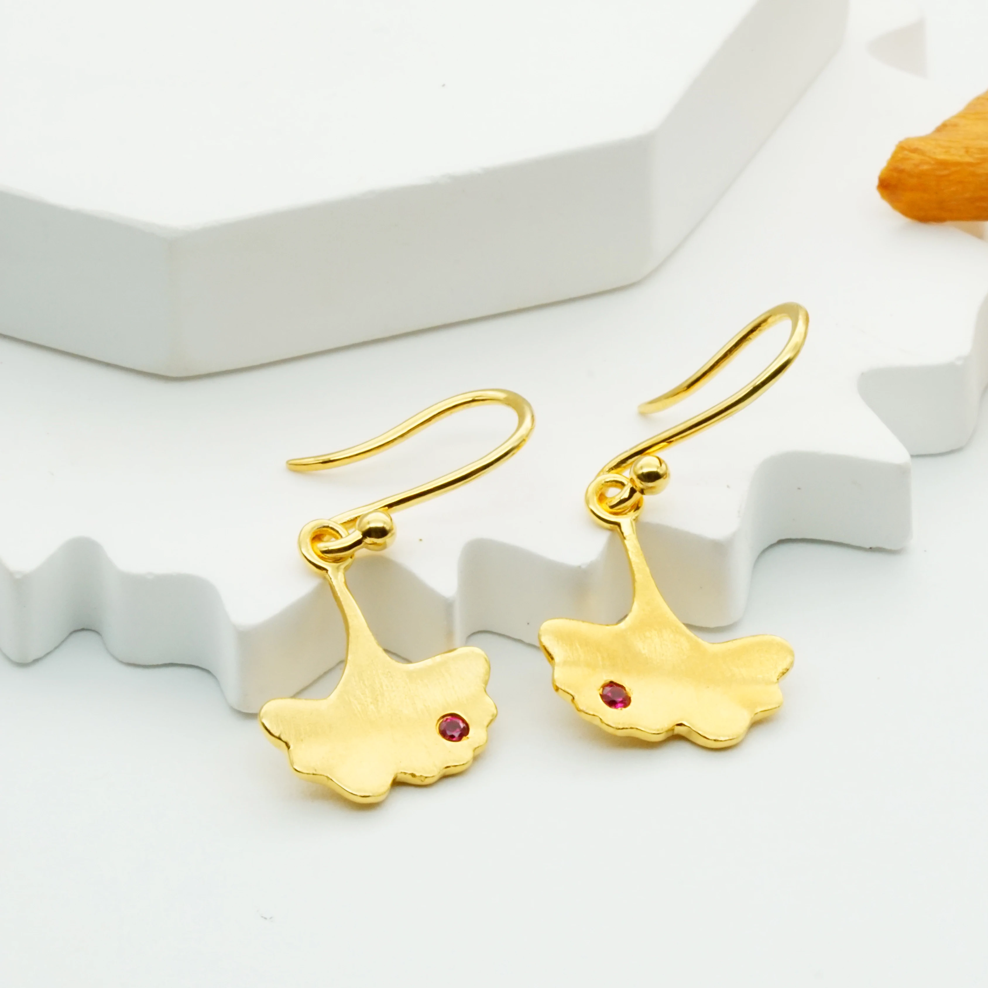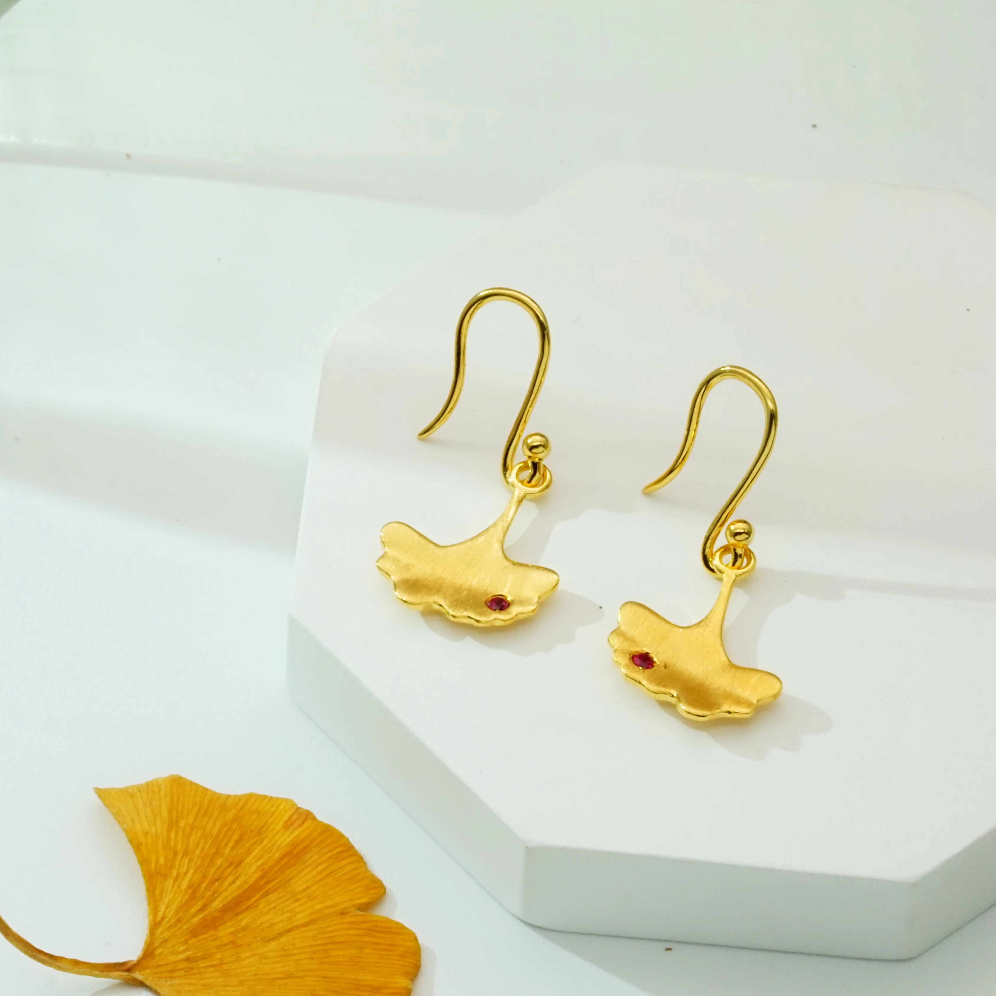 Original Design 9k 14k 18k Gold Inlaid Corundum Ginkgo Earring Necklace Jewelry Set Botanical Elements Leaves for Weddings